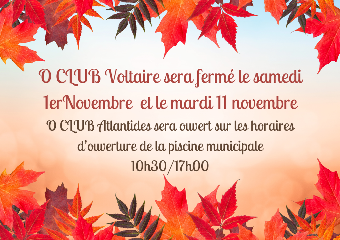 O Club Voltaire : fermé (samedi 1 novembre et mardi 11 novembre)