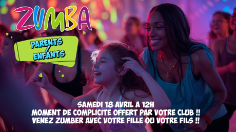 Vivez un moment de complicité avec votre fils ou votre fille en venant particper avec lui ou elle à un cours de Zumba !! Séance offerte pour votre enfant.